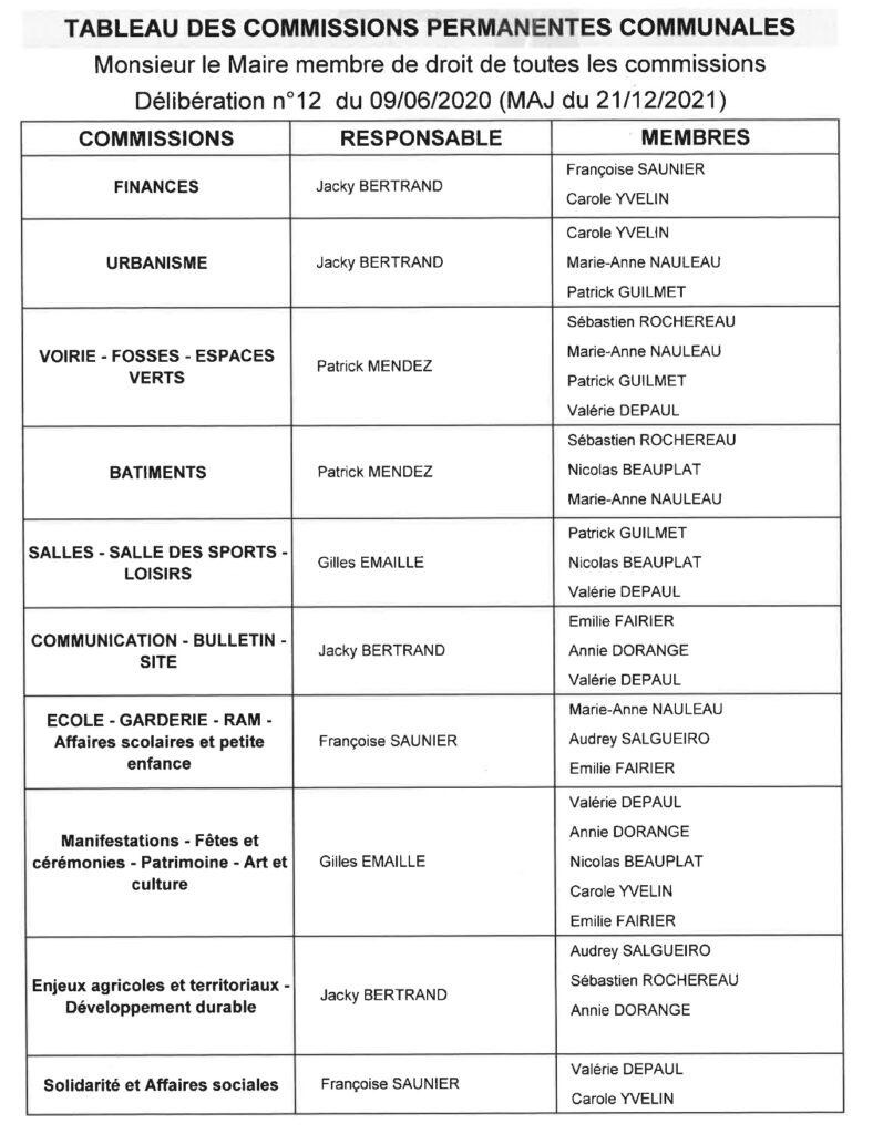 Liste des commissions